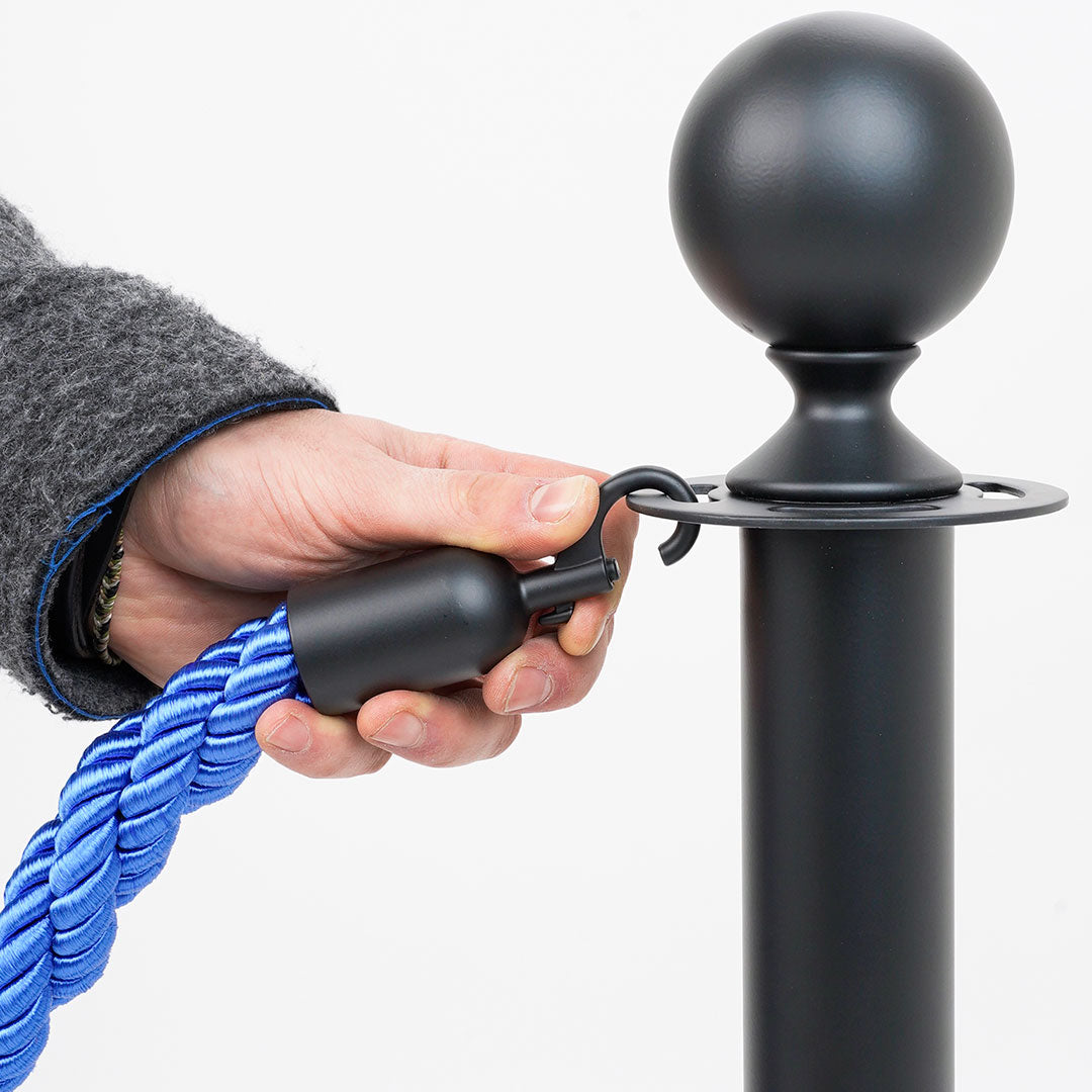 Este cordón trenzado está diseñado para utilizarse con postes separadores negros, encajando perfectamente en sus ganchos laterales y garantizando una delimitación estable y visualmente uniforme en cualquier espacio.