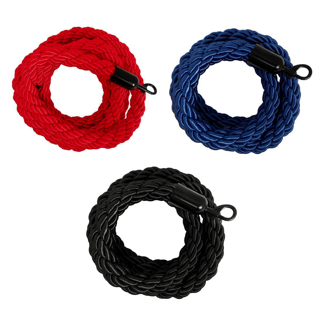 Cordón trenzado de 2 metros de largo, para postes separadores negros, disponible en colores rojo, azul y negro, así como también en medidas personalizadas.