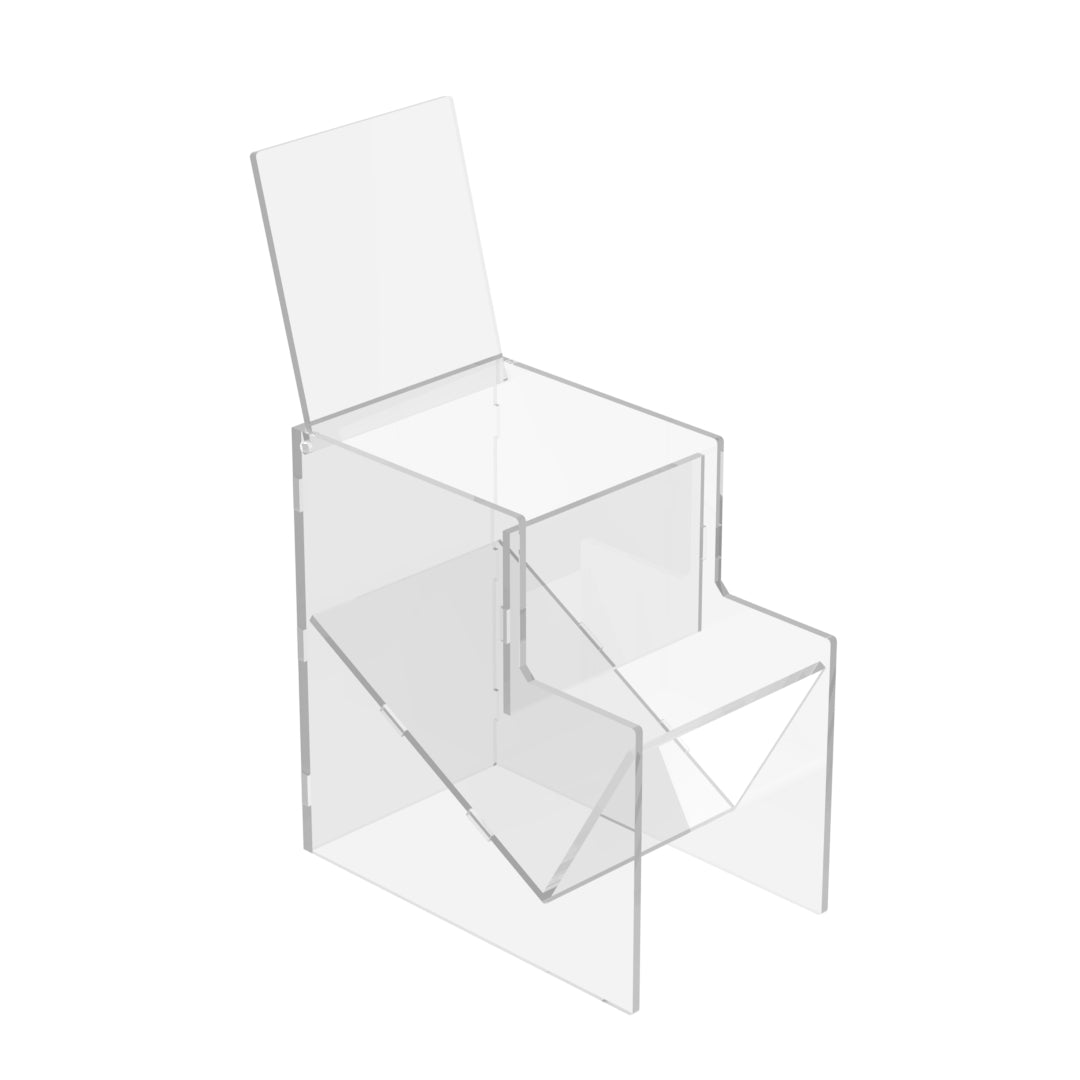 Cada pieza que compone el expositor llega protegida por una película (de color azul o transparente) para evitar daños durante el transporte y que debe ser retirada antes del montaje. Dentro del paquete encontrarás las instrucciones con los pasos a seguir para el montaje.