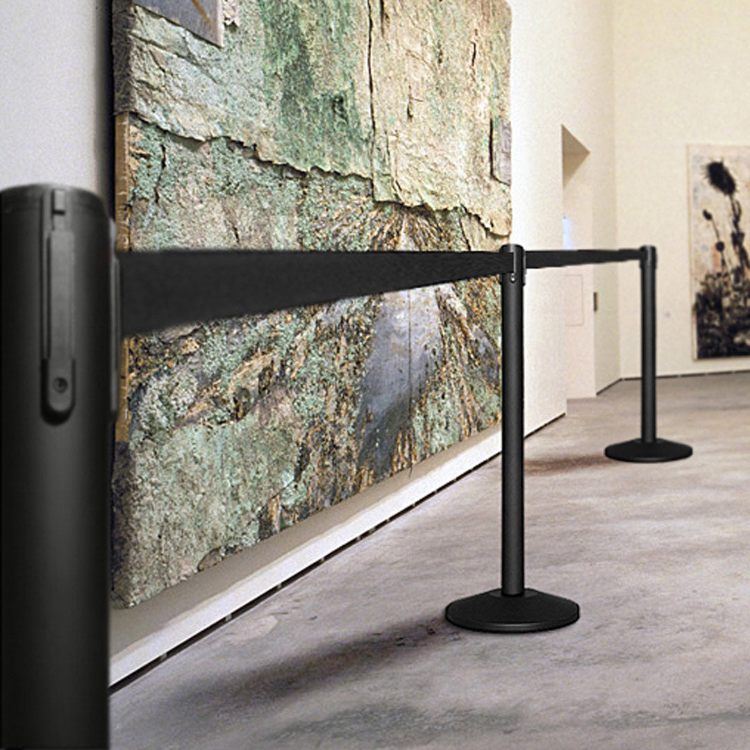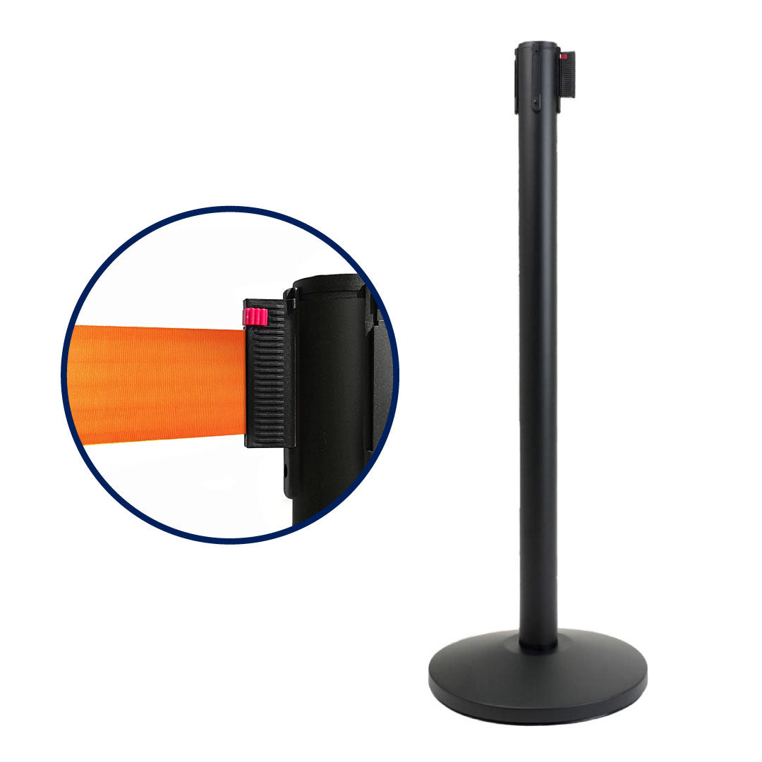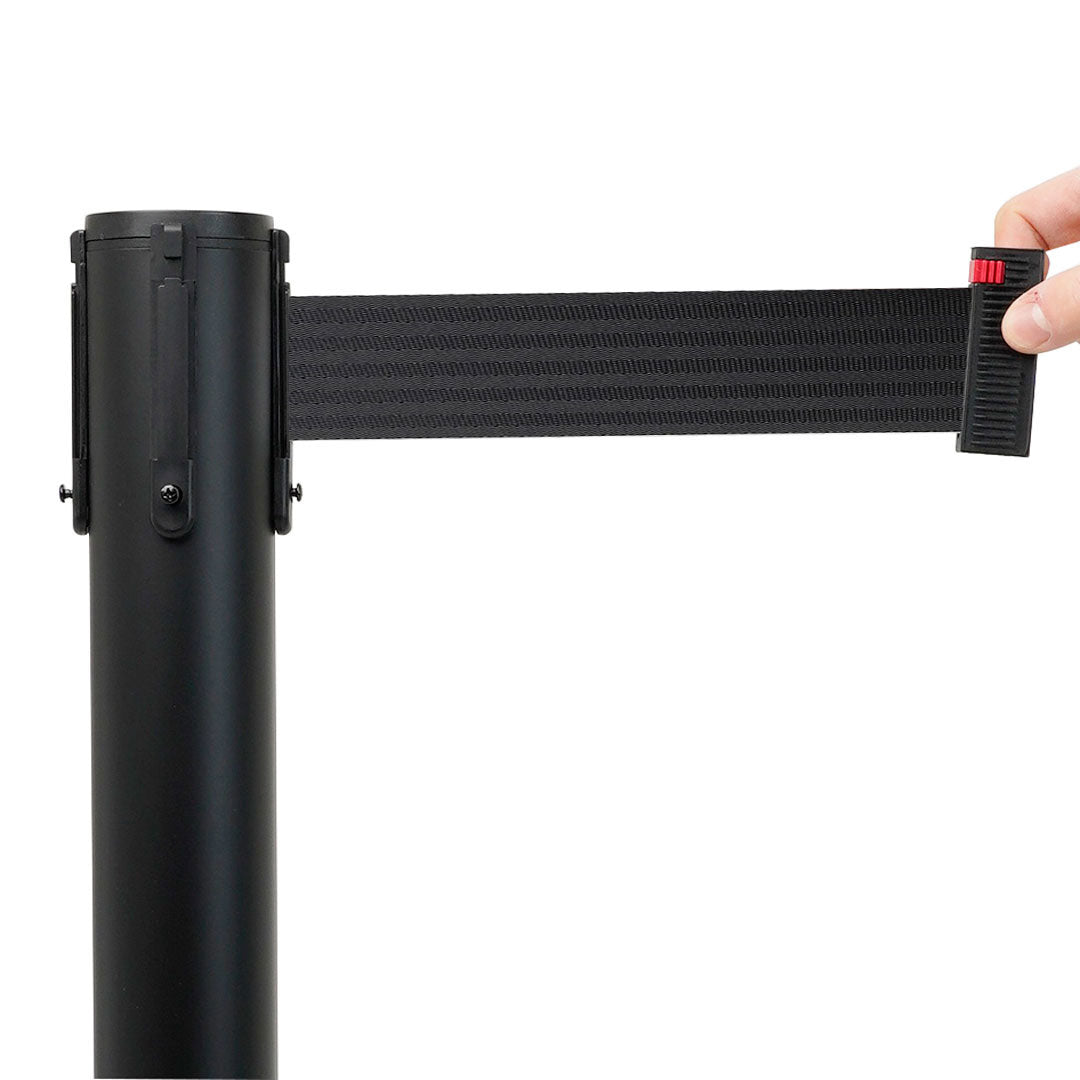 Poste separador Negro con cinta retráctil de 3 metros