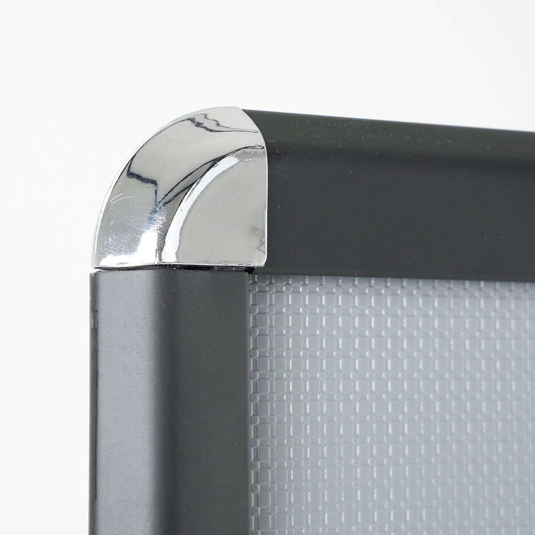 Levanta los perfiles de aluminio, inserta el aviso a mostrar y cierra los perfiles con un rápido movimiento. Para proteger tu póster, se incluye una hoja de PVC transparente antirreflejante. El sistema de apertura rápida del marco ha sido probado rigurosamente para garantizar la resistencia de los muelles y su resistencia en el tiempo.